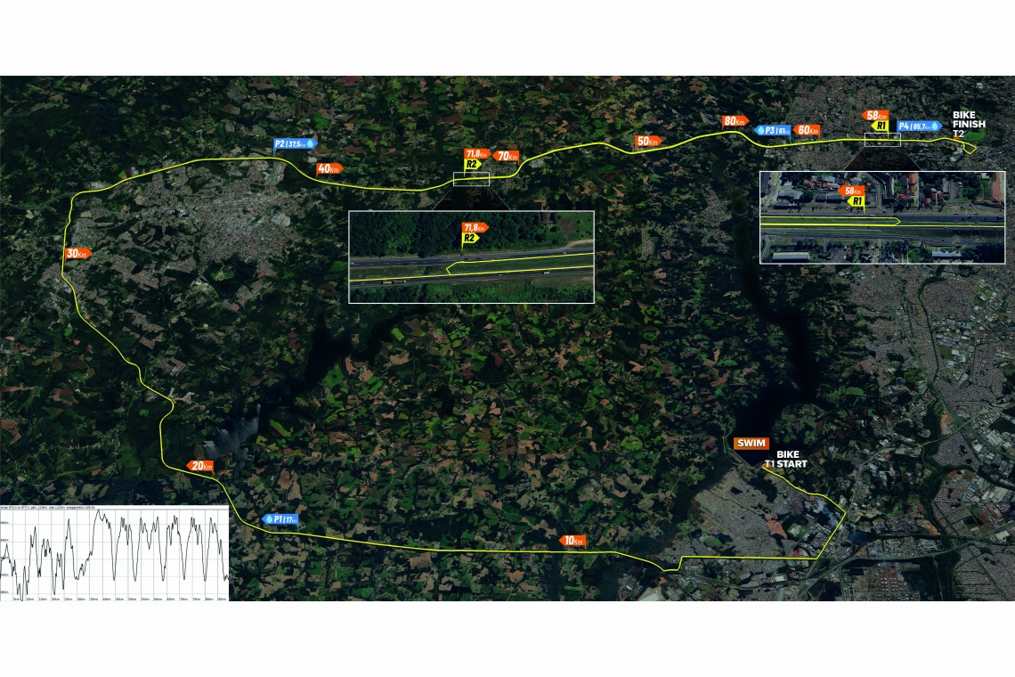 O percurso do Itaú BBA IRONMAN 70.3 Curitiba envolve 1,9 km de natação na Represa do Passaúna, que abrange as cidades de Curitiba, Campo Largo e Araucária, seguido por 90 km de ciclismo. O percurso de corrida de 21,1 km será realizado no coração da cidade, no Parque Barigui, onde também estarão localizados o IRONMAN Village e a linha de chegada, garantindo uma experiência única para atletas e espectadores.