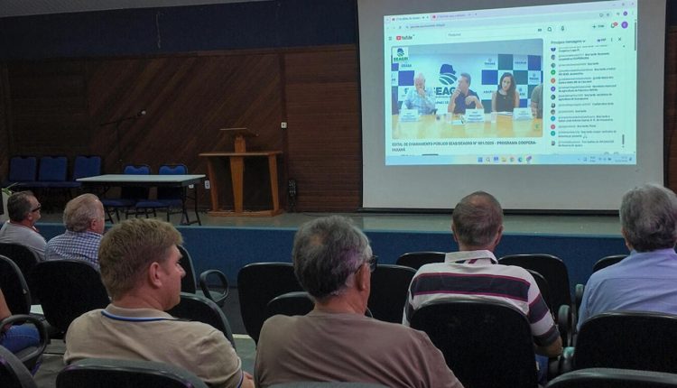 Produtores da agricultura familiar, dirigentes de cooperativas e técnicos ligados ao agronegócio de Toledo e da região participaram, na tarde desta segunda-feira (12), de uma videoconferência sobre o novo edital do Coopera Paraná, programa do Governo do Estado voltado ao fortalecimento do cooperativismo e associativismo no campo. A atividade ocorreu no auditório do Centro de Eventos Ismael Sperafico e foi transmitida ao vivo pelo canal do Instituto de Desenvolvimento Rural do Paraná (IDR-PR) no YouTube.